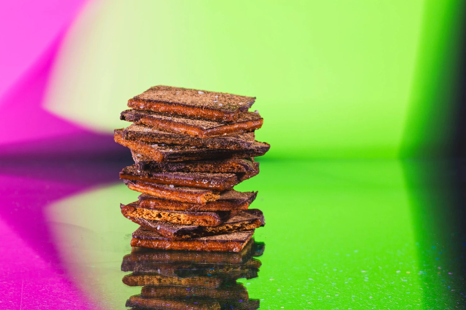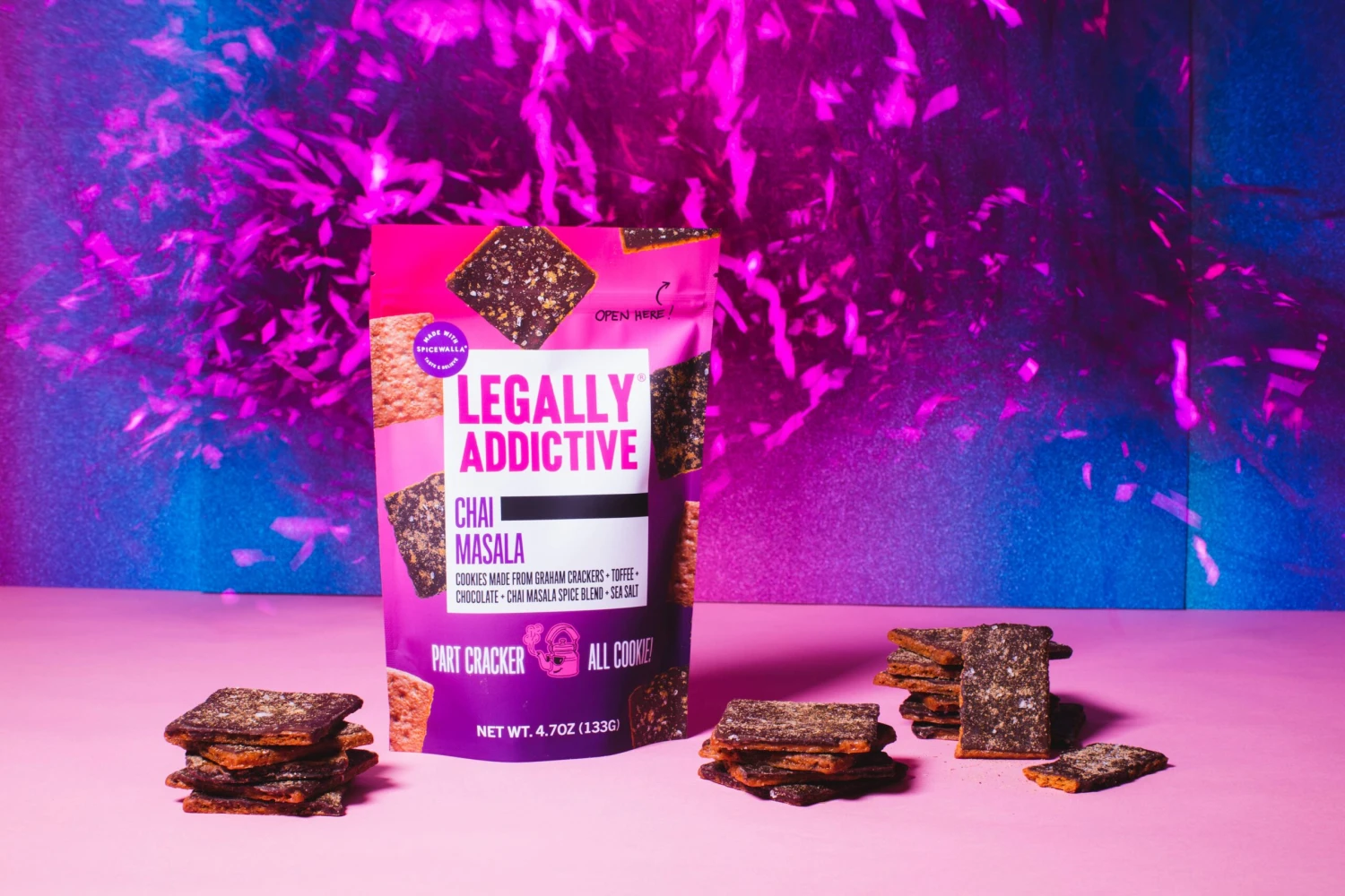 Graham cracker topped with homemade salted toffee, sustainably sourced chocolate, sea salt & chai masala spice mix.