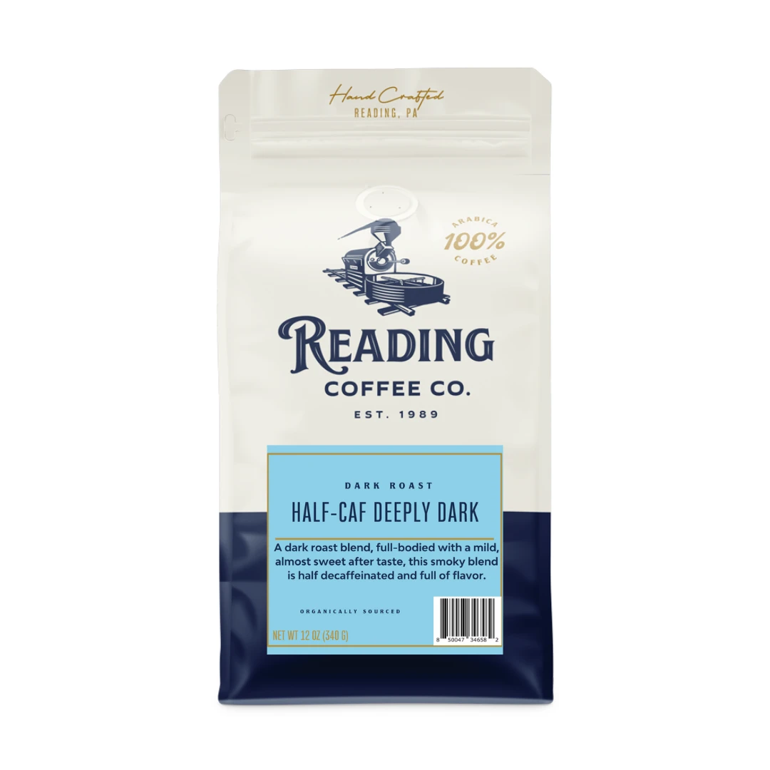 A delectable dark roast blend based on our Colombian San Francisco, full-bodied with a mild, almost sweet after taste, this smoky blend is half decaffeinated and full of flavor.