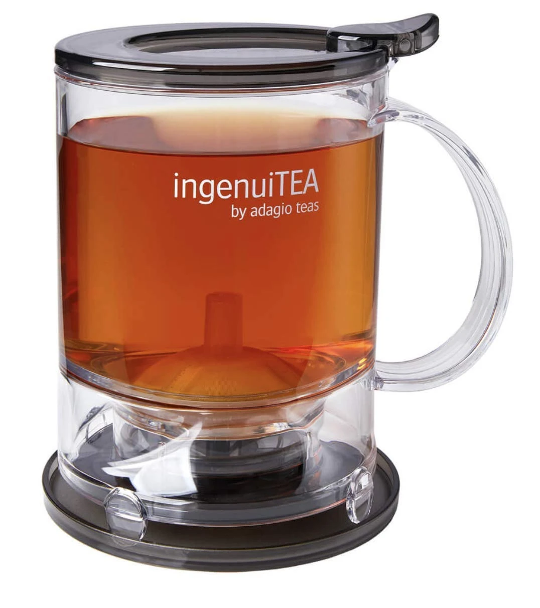 IngenuiTEA 2 includes a BPA-free plastic filter basket. The entire unit is microwave safe. It also includes a handy drip-tray. 3.5″ Diameter. 16 oz.