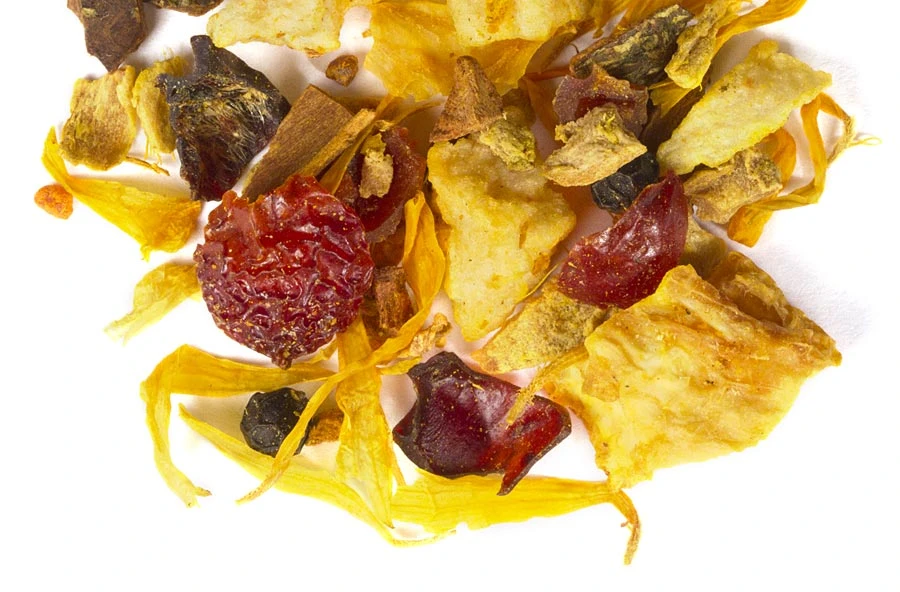 Bright and sunny, our turmeric tea has the fruity, sweet taste of juicy mangoes and the zest of Florida oranges. The fruitiness balances the earthiness of the turmeric, widely popular for its health benefits, while ginger and peppercorn enliven your sense. Savor the taste as you heal your body.